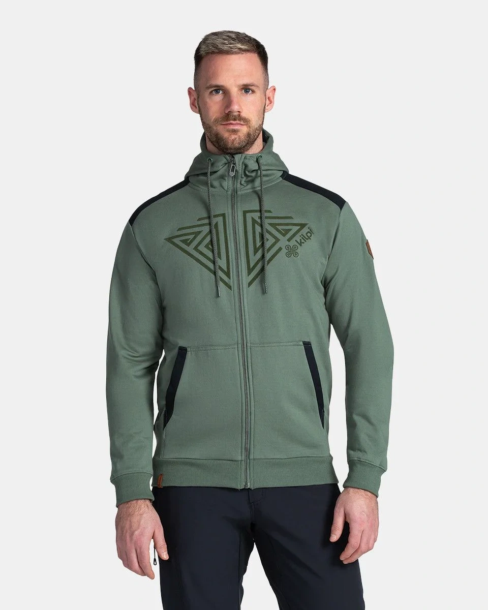 Męska bawełniana bluza rozpinana Kilpi ADELAN-M ma dwie kieszenie, kaptur ze sznurkiem ściągającym i efektowny nadruk na piersi.Stylowy design uzupełniają naszywki ze skóry syntetycznej.Model na zdjęciu: rozmiar M, wzrost 188 cm, obwód klatki piersiowej 100 cm, obwód talii 84 cm, obwód bioder 97 cm.Skład materiału: