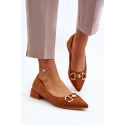 Miękkie w dotyku baleriny damskie z eko-skóry. Szpiczasty nosek i delikatne zdobienia dodają im uroku. Miękka wkładka z eko-skóry zapewnia komfort noszenia przez cały dzień. Osadzone na niskim obcasie typu klocek. Niezbędny element Twojej wiosenno-letniej garderoby!