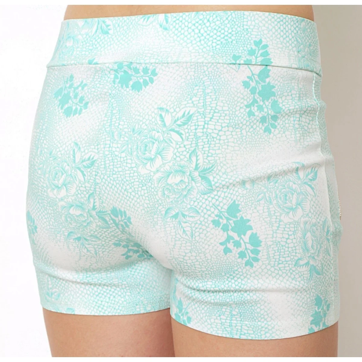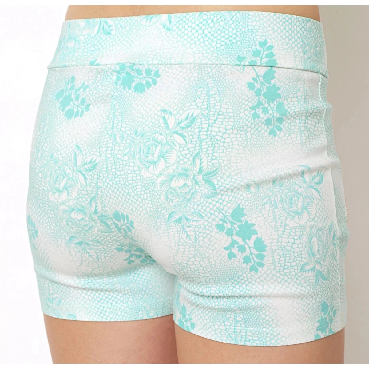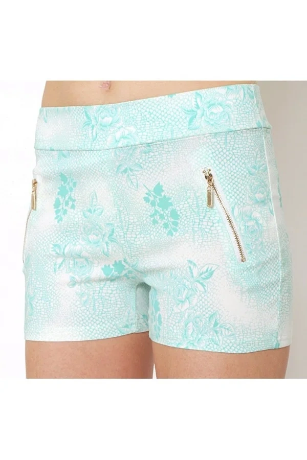 damskie bawełniane elastyczne szorty BLACK&FISH ozdobione suwakami koralowy/miętowy/beżowy