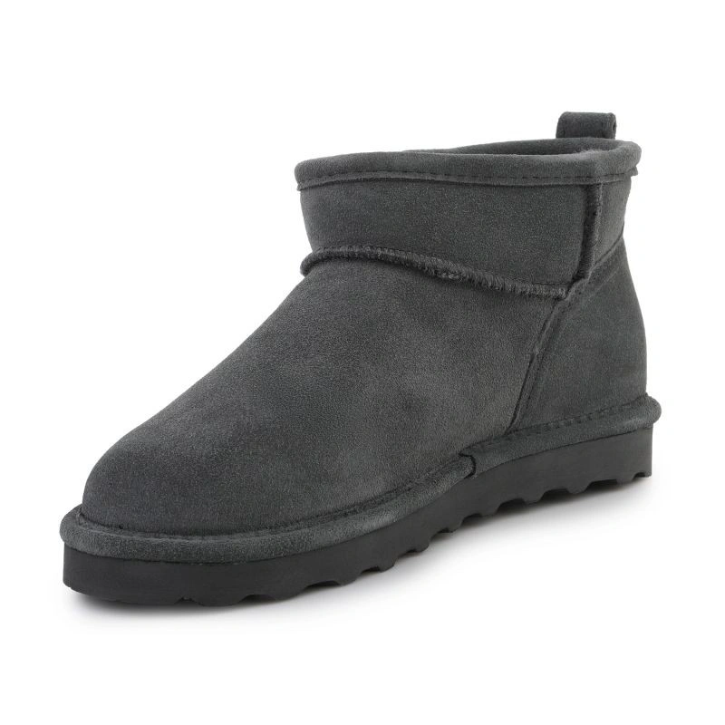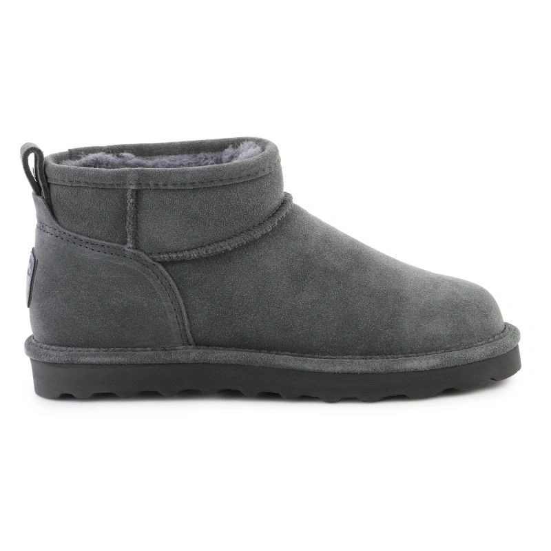 Model Bearpaw Shorty 2860W-071 w odcieniu „Gray Fog” to stylowe i funkcjonalne zimowe botki damskie, zaprojektowane z myślą o codziennym użytkowaniu w chłodniejszych, wilgotnych warunkach. Swoją trwałość zapewniają dzięki cholewce z wysokiej jakości zamszu, który wyróżnia się elegancją i naturalnym wyglądem. Zamsz jest dodatkowo zabezpieczony powłoką NeverWet – co zwiększa odporność na plamy i wilgoć, dzięki czemu buty lepiej znoszą deszcz, śnieg i błoto.
