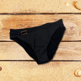 Figi od kostiumu kąpielowego Selmark to elegancki i wygodny strój o kroju bikini. Z przodu znajduje się ozdobna metka na wszytym sznurku. Szybkoschnący materiał sprawia, że jest idealny do pływania i opalania się na plaży lub basenie.