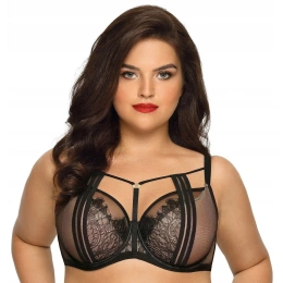 Angelina w wersji półusztywnianej ma wszystko, czego można oczekiwać od luksusowego biustonosza.wykonane z beżowej pianki pokrytej przezroczystym tiulem i koronką, dla większego komfortu dolna część miseczki podszyta jest bawełną.biustonosz doskonale zbiera i modeluje piersi, sprawiając, że dekolt jest niezwykle atrakcyjny.