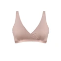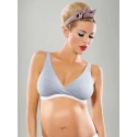 Funkcjonalny i wygodny biustonosz dla matek karmiących. Miękkie, bezszwowe miseczki, delikatnie marszczone, bez fiszbin, idealnie dopasowujące się do kształtu biustu. Z tyłu zapięcie na rzep z trzystopniową regulacją obwodu.