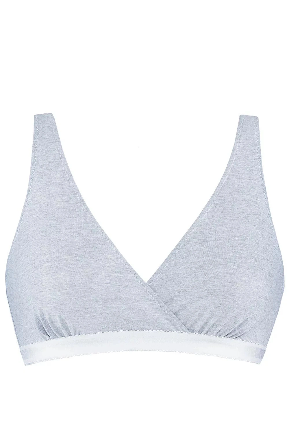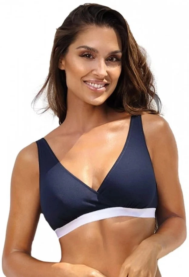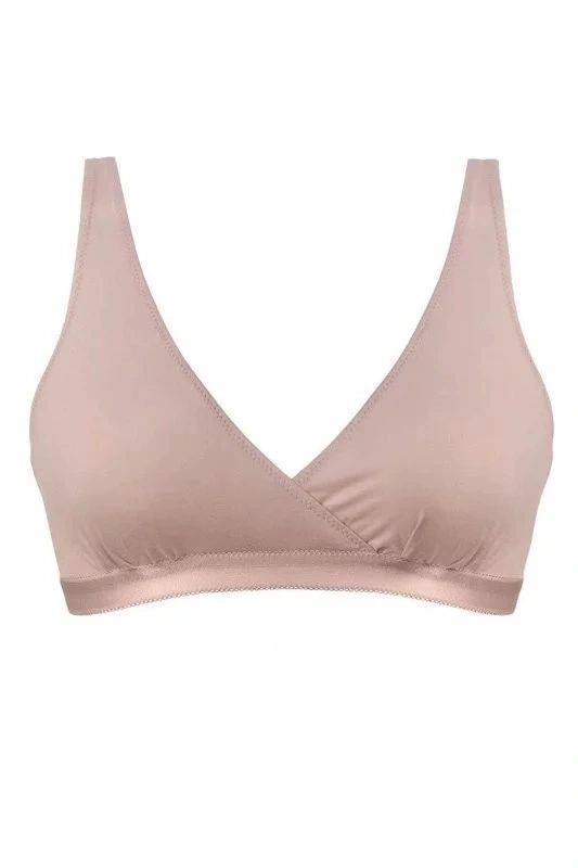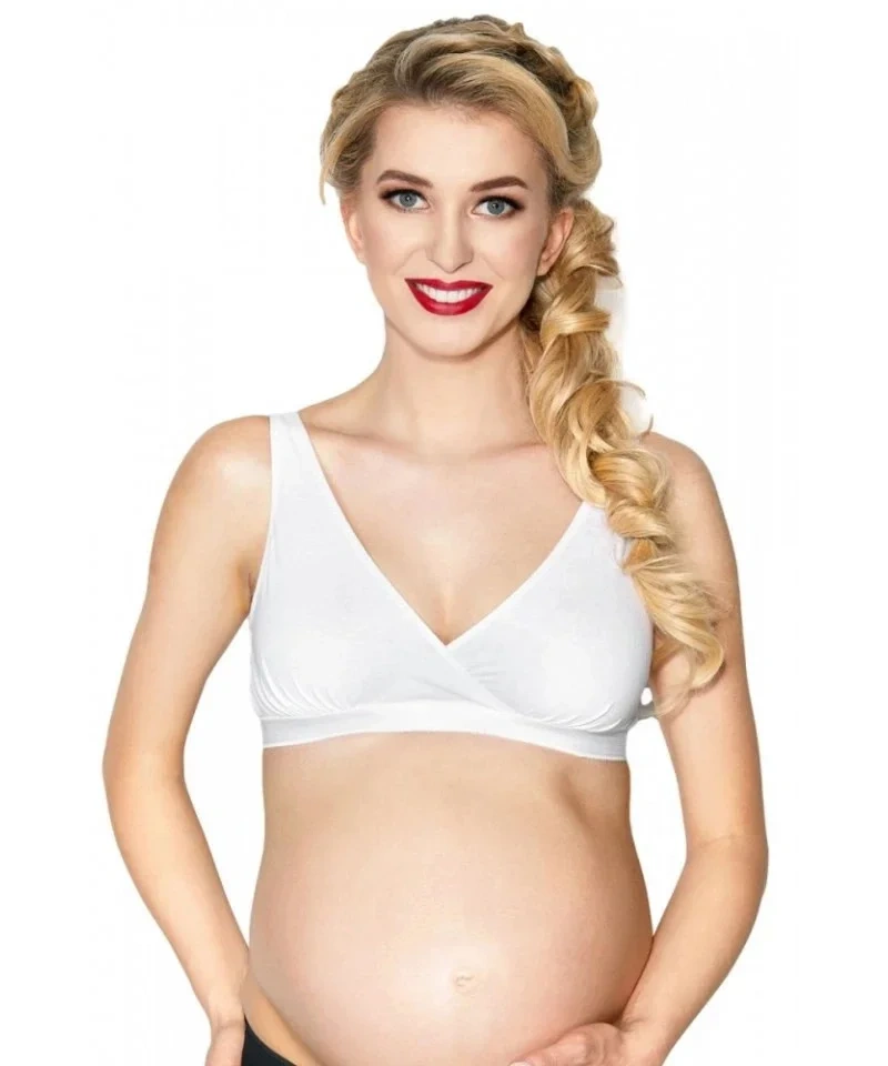 Funkcjonalny i wygodny biustonosz dla matek karmiących. Miękkie, bezszwowe miseczki, delikatnie marszczone, bez fiszbin, idealnie dopasowujące się do kształtu biustu. Z tyłu zapięcie na rzep z trzystopniową regulacją obwodu.
