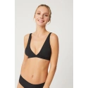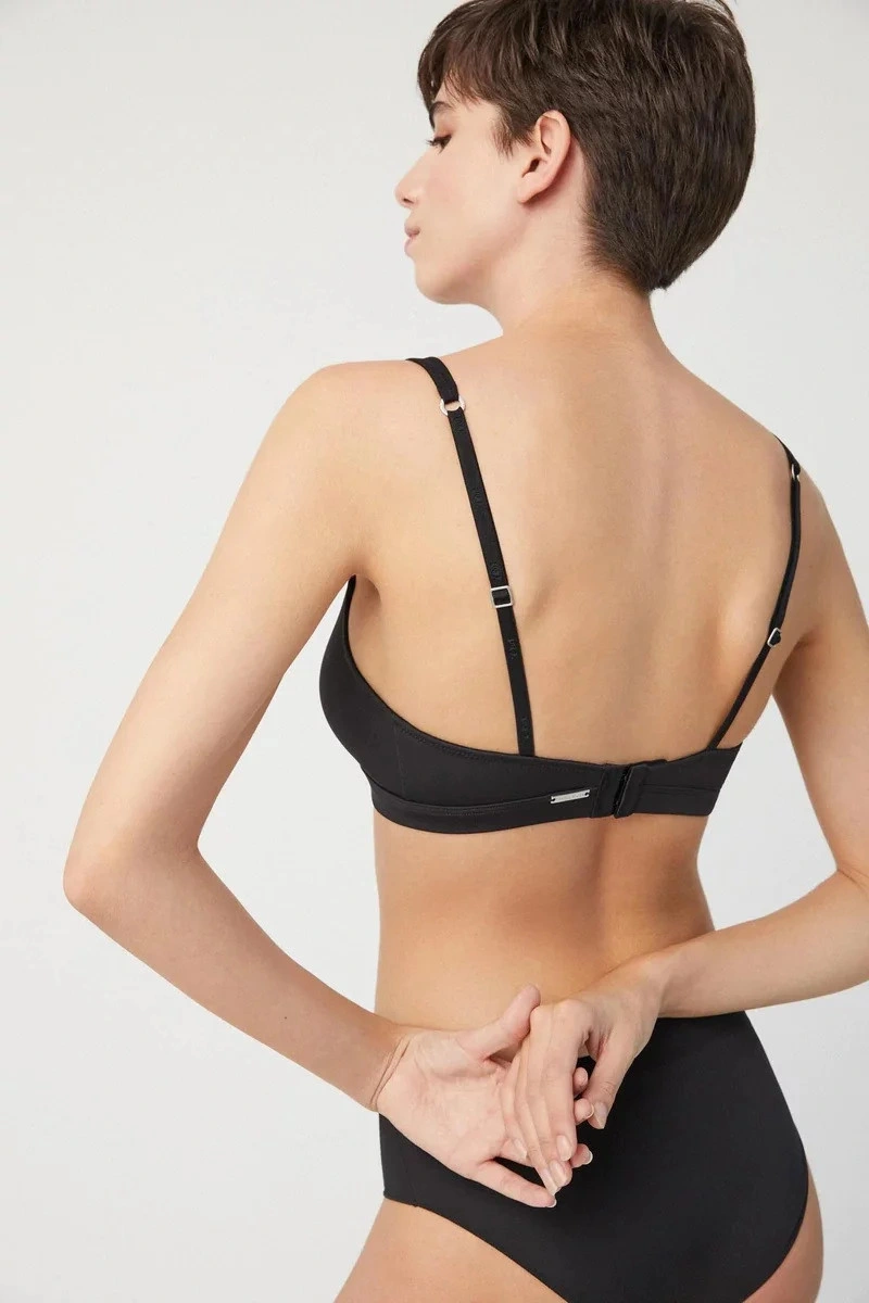 Damski nieusztywniany biustonosz elastyczny, bez fiszbin, z przesuwanymi ramiączkami.