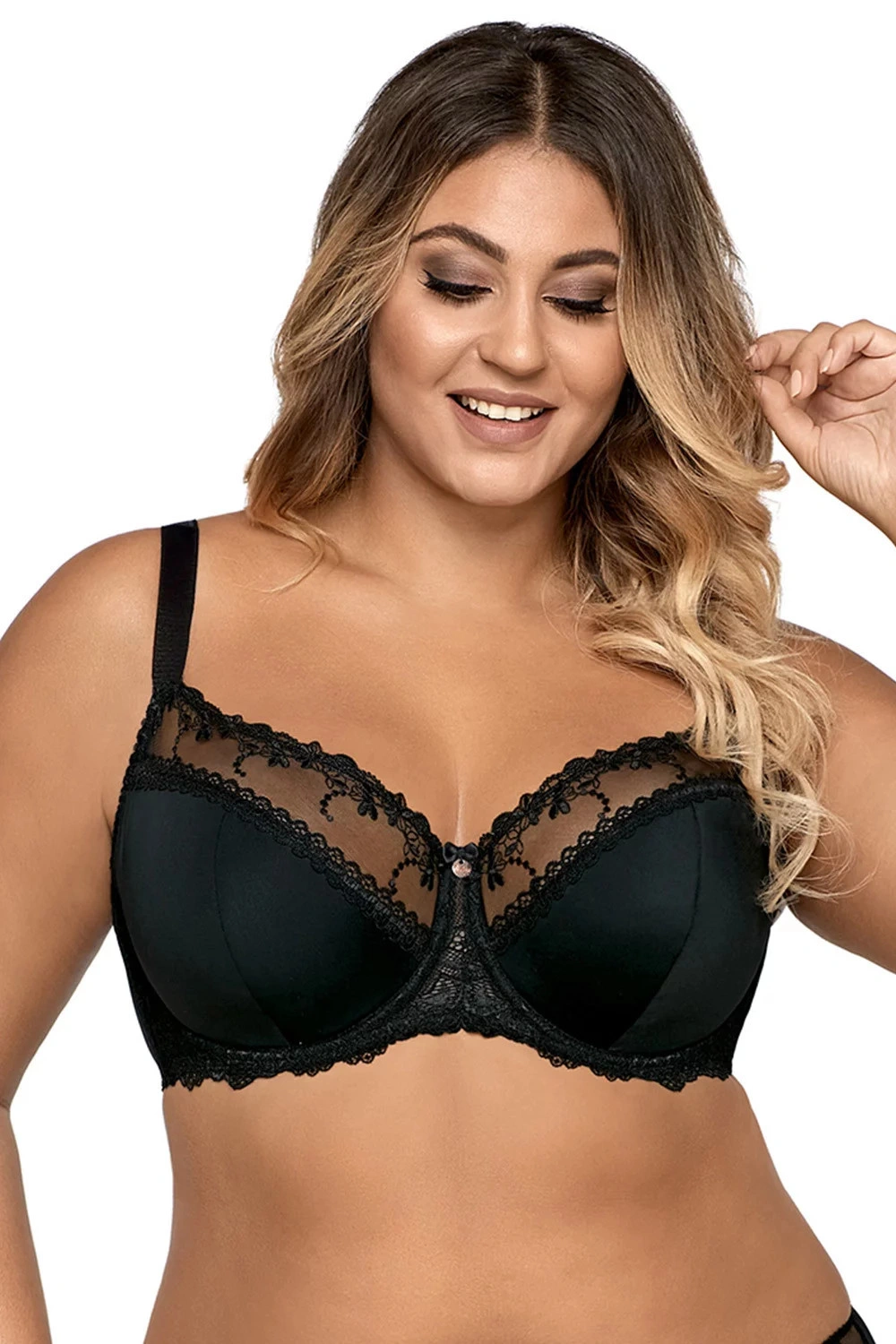 Biustonosz marki Ava, model 1030, z drutami podtrzymującymi i modelującymi biust. Pionowe fiszbiny boczne. Regulowane ramiączka bez możliwości odpięcia. Zapięcie na haftki. Punkt zapięcia: na plecach. 2 rzędy pionowych haftów. 3 poziomy haftów.