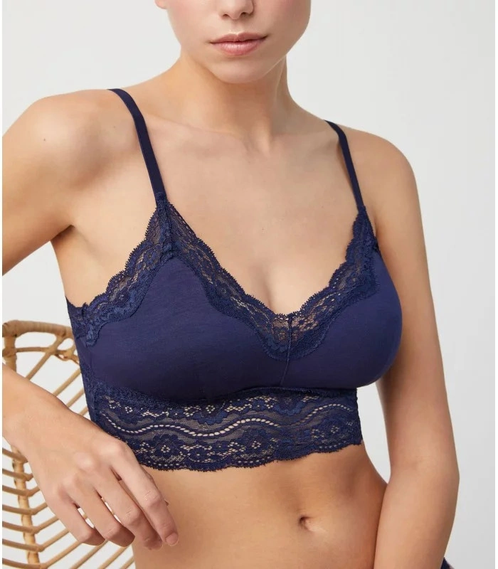 Damski biustonosz bez fiszbin, z luksusową koronką. Paski na ramię do przesuwania.
