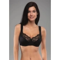 Biustonosz jest nieusztywniany, ma gładkie miseczki i ozdobną koronkę u góry. Miseczki są podszyte bawełnianą tkaniną, dzięki czemu są wygodne w noszeniu. Na środku miseczek znajduje się srebrna ozdoba z dżetów. Ramiączka zaczynają się z boku miseczek, gdzie znajduje się lekkie wzmocnienie i przechodzą w szerokie ramiączka, które nigdzie się nie przecinają i są bardzo wygodne. Ramiączka mają regulowaną długość. Biustonosz ma boczne wzmocnienia, aby pasował do większych biustów i dobrze się trzymał. Boki są gładkie. Zapięcie na dwie haftki w trzech rzędach.