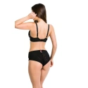 Miękki biustonosz damski, wykonany z czarnego tiulu.