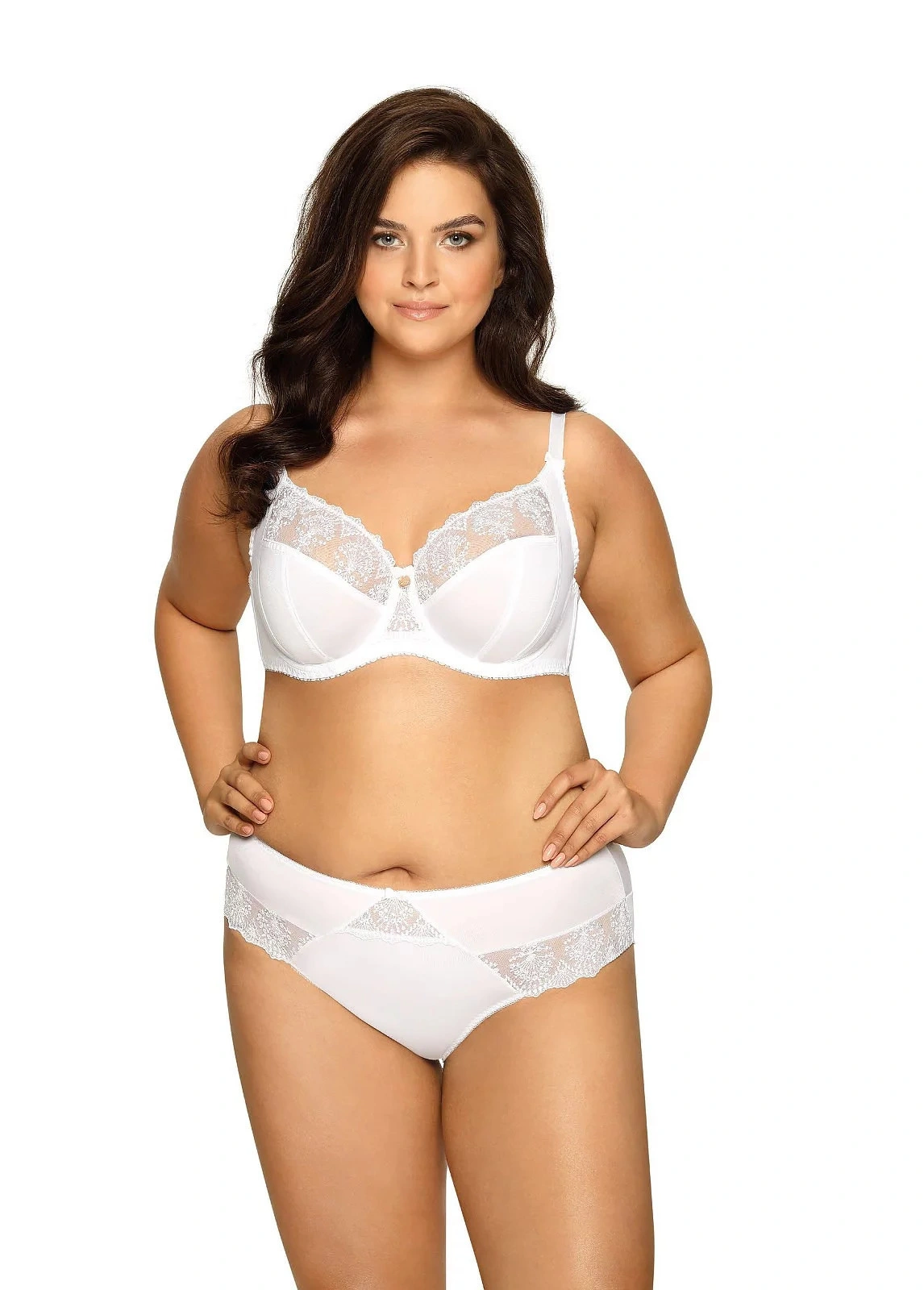 Górna linia modelu to tiulowa siateczka ozdobiona kwiatowym motywem. Dzięki panelowi bocznemu model ten stabilnie unosi biust. Pasków nie można odpiąć. Szerokość ramiączek zależy od rozmiaru biustonosza. Miseczki i ramiączka są ozdobione satynowymi kokardkami. Biustonosz ma krój i konstrukcję typu 1130.