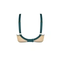 Trzyczęściowe miseczki dopasowują się do kształtu biustu i zapewniają doskonałe podtrzymanie.Koronka zdobi dolną i górną część miseczek.Błyszcząca nić subtelnie podkreśla brzegi.Środek zdobi mała zalotna kokardka.Ramiączka są mocno przytwierdzone do miseczek i można je regulować w zależności od potrzeb.Obwód wykonany z wytrzymałej elastycznej siateczki, nie posiada pionowych wzmocnień bocznych i doskonale się dopasowuje.