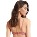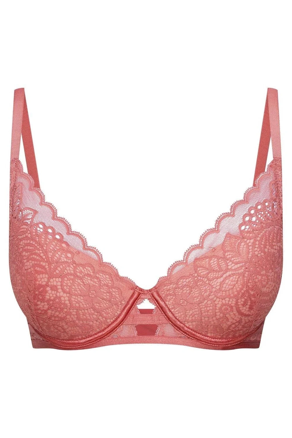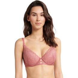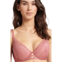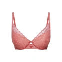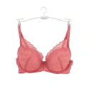 Biustonosz damski 40659 Hint8 HENDERSON - kolor różowy - miseczki push up - fiszbiny - miseczki ozdobione tiulową koronką z motywem kwiatowym - wyjmowane wkładki - regulowane i nieodpinane ramiączka - zapięcie na dwie haftki z trzystopniowym zapięciem