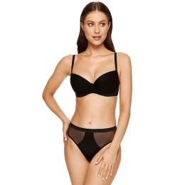 Biustonosz Gorteks, model Andrea/B1, posiada druty podtrzymujące i modelujące biust. Pionowe fiszbiny boczne. Regulowane ramiączka z możliwością odpięcia. Zapięcie na haftki. Punkt zapięcia: na plecach. 2 rzędy pionowych haftów. 3 poziomy haftów.