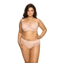 Miseczki modelu wykonane są z elastycznego materiału podszytego miękką pianką. W górnej części miseczek znajduje się ozdobny haft. Miseczki idealnie obejmują biust i unoszą go. Elastyczny obwód ładnie dopasowuje się do ciała i doskonale stabilizuje biustonosz. Koronkowy mostek ozdobiony jest delikatną kokardką z logo w kolorze różowego złota. Kokarda i ozdoba dodają delikatności i uroku całemu modelowi. Zestaw doskonale uzupełniają zmysłowe figi klasyczne lub brazylijskie.
