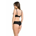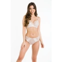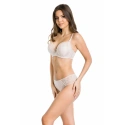 Konstrukcja biustonosza posiada boczne części, które idealnie ściągają biust do środka klatki piersiowej. Dolna część miseczek wykonana jest ze stabilnego błyszczącego materiału z wzorem. Górna część miseczek wykonana jest z koronki. Boki modelu wykonane są z grubszego materiału. Biustonosz posiada boczne fiszbiny. Miseczki są od wewnątrz pokryte bawełną. Paski można regulować, ale nie można ich zdjąć.