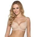 Damski biustonosz push-up z wyjmowanymi wkładkami. Miseczki modelu wykonane są z beżowej pianki pokr