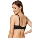 Biustonosz od Gorteks. Model Carla B5. Posiada druty, które odpowiednio kształtują piersi. Pionowe kości wieloryba osadzone po bokach. Produkt posiada regulowane paski bez możliwości odpięcia. Metalowe zaczepy do paska. Biustonosz zapinany na haftki. Punkt mocowania: tył. Dwa rzędy pionowych haczyków. Trzy poziomy poziomych zaczepów.