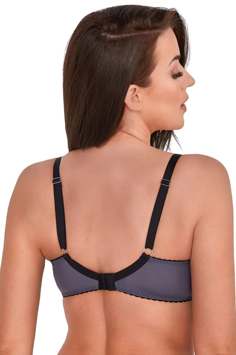 Biustonosz marki Gaia. Model 1214 Cloe. Posiada druty modelujące biust. Produkt posiada regulowane ramiączka bez możliwości odpięcia. Metalowe haftki przy ramiączku. Biustonosz zapinany na haftki. Miejsce zapięcia: tył. Dwa rzędy pionowych haftek. Trzy poziomy poziomych haftek. Produkt wykonany w 37% z poliamidu, w 33% z bawełny, w 20% z poliestru, w 6% z poliuretanu i w 4% z elastanu. Produkt przeznaczony dla kobiet. Produkt posiada kieszonki na wkładki.