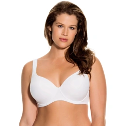 biustonosz "T-shirt" szwedzkiej marki DORINA. Biustonosz ma formowane miseczki, które ustępują miejsca delikatnie wyściełanym i wystarczająco szerokim ramiączkom. Środek biustonosza jest wyższy, a obwód jest zapinany na dwie haftki w trzech rzędach. Cała konstrukcja jest bardzo prosta i funkcjonalna. Paski są regulowane i mają ozdobny system bezpieczeństwa w postaci drobnych kropek w materiale, aby zapobiec przesuwaniu się. Biustonosz tworzy piękny profil okrągłego i uniesionego biustu.