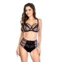 Górna linia miseczek jest ozdobiona koronką, a przy dekolcie znajdują się czarne regulowane ramiączka.