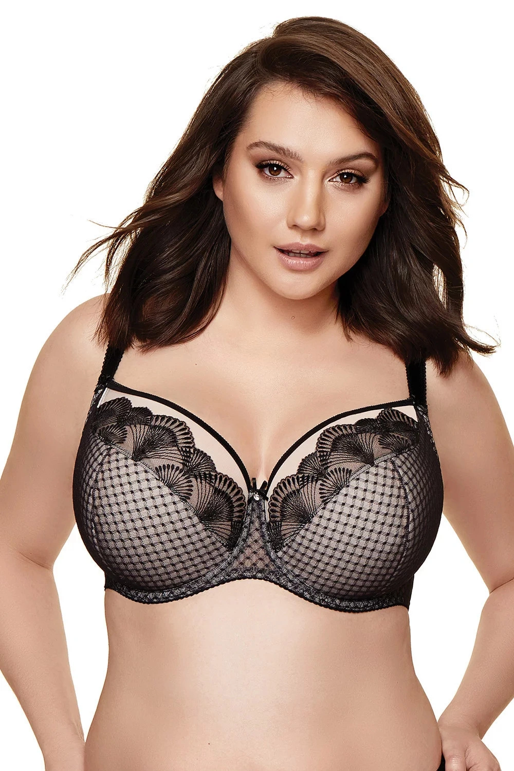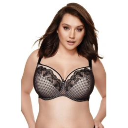 Biustonosz od Gorteks. Model Dolce/B3. Posiada druty, które odpowiednio kształtują piersi. Pionowe kości wieloryba osadzone po bokach. Produkt posiada regulowane paski bez możliwości odpięcia. Metalowe zaczepy do paska. Biustonosz zapinany na haftki. Punkt mocowania: tył.