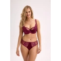 Ten półmiękki stanik w kolorze głębokiego burgundu jest idealny dla kobiet ceniących elegancję i doskonałe dopasowanie. Jego konstrukcja została starannie wykonana, aby zapewnić maksymalny komfort i charakterystyczny wygląd - ramiączka płynnie przechodzą przez usztywniane miseczki, zapewniając mocne wsparcie. Wyrafinowana haftowana koronka delikatnie otacza miseczki i zmysłowo rozciąga się na ramiączkach, tworząc luksusowy wygląd. Ten styl jest idealny do noszenia na co dzień, jak i na specjalne okazje - zawsze, gdy chcesz czuć się piękna i pewna siebie.