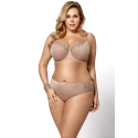 Beżowy miękki biustonosz z piękną koronkową górą. Profesjonalnie skrojone miseczki z fiszbinami bardzo dobrze zbierają i modelują biust. Centrum z gustowną metką. Regulowane paski. Elastyczny pasek z zapięciem na rzep.