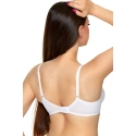 Biustonosz marki Jagoda. Model Nikola. Posiada druty modelujące biust. Pionowe fiszbiny boczne. Produkt posiada regulowane ramiączka bez możliwości odpięcia. Metalowe haftki przy ramiączku. Biustonosz zapinany na haftki. Miejsce zapięcia: z tyłu. Dwa rzędy pionowych haftek. Trzy poziomy haftek.