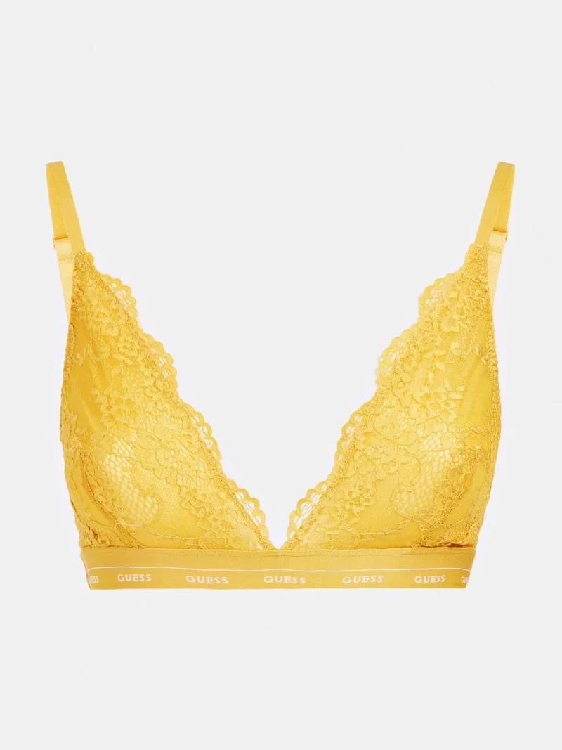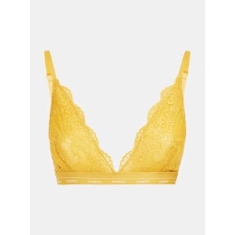Oszałamiający biustonosz typu bralette marki Guess w kolorze musztardowym z nadrukowanym logo. Zapewnia całkowity komfort i doskonały wygląd.