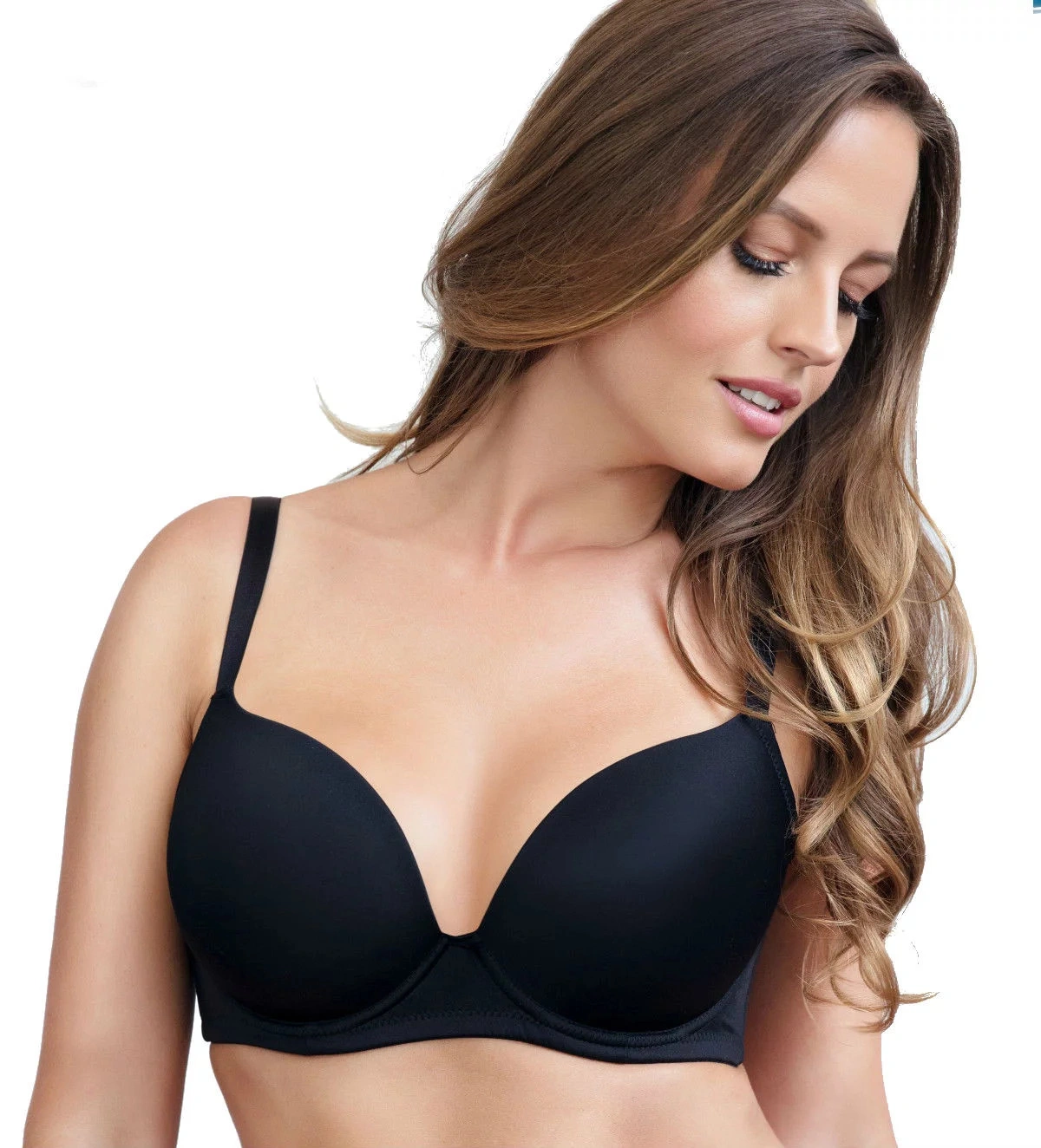 Nowy biustonosz typu plunge EMMA od PARFAIT. Bezszwowe, profilowane i bardzo precyzyjnie wykonane miseczki, regulowane ramiączka z możliwością odpięcia i zapięcia z tyłu na krzyż oraz obwód zapinany na dwie haftki w trzech rzędach. Biustonosz tworzy okrągły kształt biustu i piękny głęboki dekolt do rozmiaru miseczki I (EU) i 100 cm! Wzornictwo z miękkiego, błyszczącego mikro podkreśla prostą, ale technicznie dopracowaną linię najważniejszego biustonosza w kobiecej garderobie.