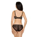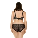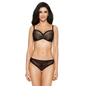 Uwodzicielski, wzmocniony biustonosz doskonale podkreśla kobiece kształty. Miseczki pokryte są kwiatową koronką i satynowym wykończeniem. Trzyczęściowe miseczki wykonane z cienkiej pianki gorsetowej. Wewnętrzna część kubków jest wypełniona bawełną. Tył wykonany z koronki wzmocnionej tiulem. Regulowane paski, nieusuwalne. Pionowe fiszbiny boczne zapobiegające zgnieceniu bocznemu. Drobna dekoracja między kubkami.