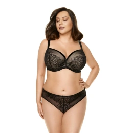Uwodzicielski, wzmocniony biustonosz doskonale podkreśla kobiece kształty. Miseczki pokryte są kwiatową koronką i satynowym wykończeniem. Trzyczęściowe miseczki wykonane z cienkiej pianki gorsetowej. Wewnętrzna część kubków jest wypełniona bawełną. Tył wykonany z koronki wzmocnionej tiulem. Regulowane paski, nieusuwalne. Pionowe fiszbiny boczne zapobiegające zgnieceniu bocznemu. Drobna dekoracja między kubkami.