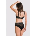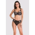 Dolna część miseczki jest haftowana nićmi w mieniących się kolorach od szmaragdowego do granatowego, tworząc efekt ombre. Ramiączka i ramiączka w kolorze czarnym.