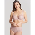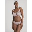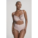 Nieusztywniany biustonosz Panache Serene oferuje podobne dopasowanie do naszego wieloletniego standardu, biustonosza Envy. Serene zachwyci Cię subtelnym geometrycznym wzorem, półprzezroczystym obszyciem wzdłuż dekoltu i regulowanymi ramiączkami, które można skrzyżować z tyłu. Ma uroczy elegancki wygląd, miseczki są nieprzezroczyste. Miseczka jest uszyta z 4 części i ma górną krawędź z elastycznej koronki. Boczne wsparcie zapewnia, że biust nie wychodzi poza sylwetkę. Biustonosz doskonale unosi i modeluje biust nawet w największych rozmiarach. Zapięcie jest wyściełane z tyłu dla maksymalnego komfortu. Obwód biustonosza ma ukryte szwy, dzięki czemu jest bardzo wygodny na ciele. W tym kolorze biustonosz pasuje pod jasne i białe ubrania. Zalecamy łączenie go z wyższymi majtkami w tej samej tonacji kolorystycznej i z identyczną elastyczną koronką.