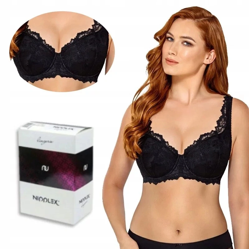 Miseczki i ramiączka pokryte koronką.