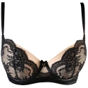 Wkrocz do krainy marzeń i romantyzmu, odkryj nasz nowy projekt miękkiego biustonosza V-10711, połączenie miękkiego beżowego tiulu na miseczkach z bogato zdobioną czarną koronką to model, który z pewnością Cię zachwyci. Dolna linia biustonosza ma elastyczny pas, który zapewnia stabilność i wygodę podczas noszenia. Biustonosz zapina się na podwójną haftkę, dodatki w kolorze złotym.