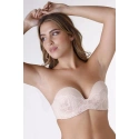 Biustonosz Wonderbra, model WB000BHO, z drutami podtrzymującymi i modelującymi biust, pionowe fiszbiny boczne, zapięcie na haftki, tył, wykonany w 59% z poliamidu, w 22% z poliestru, w 15% z elastanu, w 4% z wiskozy, damski, z silikonową taśmą.
