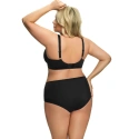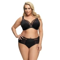 Elegancki czarny biustonosz na miękkich fiszbinach, odpowiedni dla średnich i większych biustów. Bardzo ładny dekolt, szczególnie dzięki delikatnemu duetowi koronki z lekkim tiulem, który wykańcza dekolt. Regulowane ramiączka do dopasowania rozmiaru. Skład: 90% poliamid, 7% elastan, 3% poliester.