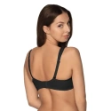 Dolna część miseczek jest podszyta materiałem. Górna część miseczek jest obszyta koronką. Model posiada boczny pas, który ładnie ściąga biust do połowy klatki piersiowej. Biustonosz zapinany jest na dwie lub trzy haftki z trzema opcjami regulacji obwodu. Model jest odpowiedni dla kobiet z większym biustem.