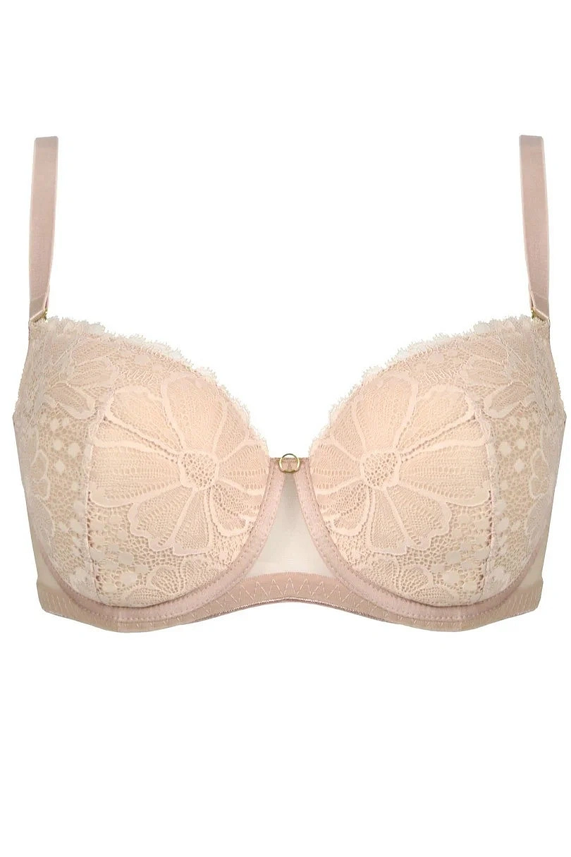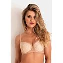 Biustonosz Julia Full Cup Bra 19230 Beige Mediolano to elegancki model zaprojektowany z myślą o pełniejszych biustach i maksymalnym komforcie noszenia. Pełne miseczki wyposażono w wyjmowane wkładki push-up, które delikatnie modelują i unoszą biust, pozostawiając możliwość indywidualnego dopasowania efektu. Wyższy mostek zapewnia dodatkowe podtrzymanie i stabilizację. Całość miseczek i pokryto delikatną koronką o kwiatowym wzorze, która nadaje bieliźnie romantycznego i kobiecego charakteru. Obwód wykonany z elastycznej siateczki i koronki, bez bocznych dużych fiszbin, gwarantuje miękkość i wygodę podczas noszenia. Regulowane ramiączka i klasyczne zapięcie na haftki pozwalają na idealne dopasowanie do sylwetki.