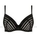 Miseczki są wzmocnione specjalną wyściółką, która jest przyjemnie elastyczna i dobrze dopasowuje się do kształtu ciała. Zewnętrzna strona pokryta jest delikatną tkaniną z wzorem, w eleganckim czarnym kolorze.
