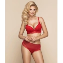 Model zapewnia doskonały efekt uwydatnienia biustu (miseczki A i B mają podwójny efekt push-up). Miseczki wykonane są z fantazyjnej koronki, są lekko marszczone, termicznie formowane i podszyte bawełną. Boki modelu wykonano z podwójnej tiulowej siateczki i wzmocniono pionowymi fiszbinami. Paski można odpiąć.