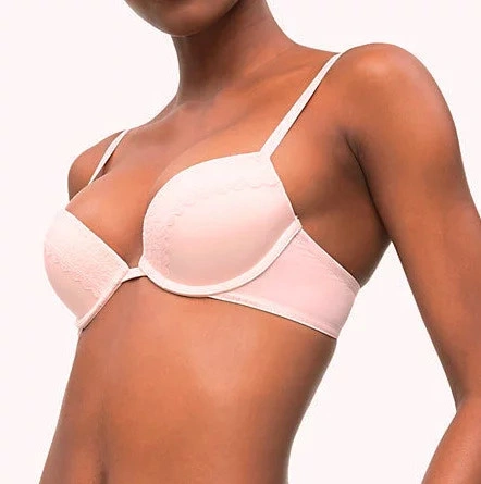 Usztywniane miseczki z efektem push up mają miękką piankową wyściółkę z fiszbinami, aby stworzyć pełny dekolt. Pomiędzy kubkami znajduje się niski środek.podwójnie szyty obwód jest wykończony elastycznymi paskami z logo Calvin Klein. Regulowane paski nie są odpinane. Klasyczne zapięcie na dwa haczyki z trzycyfrowym przesunięciem.