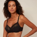 Miękki biustonosz soft to niezwykłe połączenie transparentnego beżu z ciemną czernią. Idealne połącz