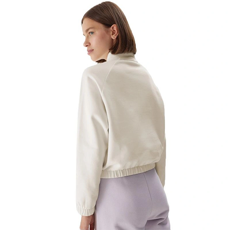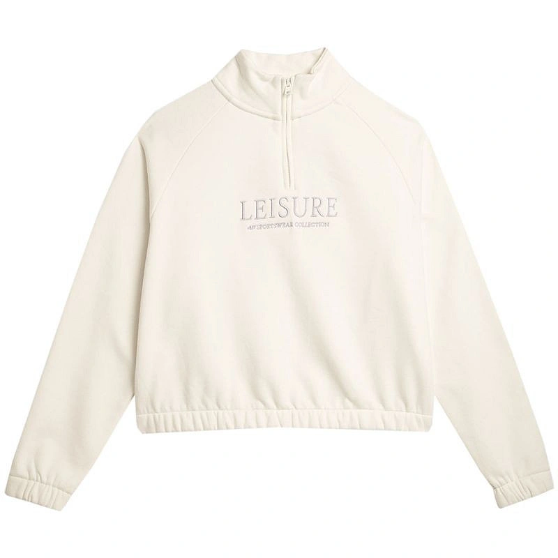 Bluza damska 4F F0718 kremowa 4FAW23TSWSF0718 12S Bluza damska sprawdzi się na co dzień. Ocieplana. Wkładana przez głowę. Bez kaptura. Stójka z krótkim suwakiem. Z przodu haftowany napis "Leisure 4F Sportswear Collection". Raglanowe rękawy zapewniają swobodę ruchu. Dół i mankiety zakończone gumkami. Miękki materiał z wysoką zawartością bawełny dla komfortu na co dzień. Materiał główny: 78% bawełna, 12% poliesterPodszewka: 100% bawełna
