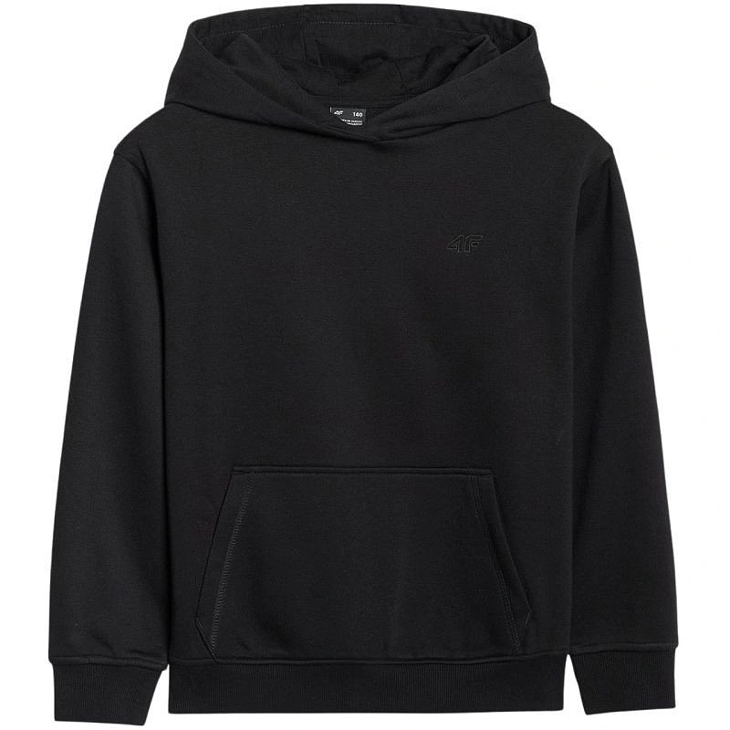 Bluza dla chłopca 4F M1860 głęboka czerń 4FJWMM00TSWSM1860 20S Bluza dla chłopca 4F sprawdzi się na co dzień. Dane techniczne:· Materiał główny: 80% bawełna, 20% poliester· Materiał dodatkowy: 100% bawełna· Materiał dodatkowy 2: 95% bawełna, 5% elastan· Jednostronnie czesane wnętrze – zapewnia dodatkowe ciepło i komfort termiczny· Krój oversize – luźno układa się na sylwetce, oferując dużą swobodę ruchów· Długość sięgająca do bioder dla codziennej wygody· Naturalna miękkość i trwałość bawełnianego materiału· Dodatek poliestru - zwiększa odporność na zużycie i przedłuża żywotność produktu· Jednolita kolorystyka – uniwersalna baza dla różnych stylizacji· Dzianina single jersey – gładka i miękka w dotyku powierzchnia· Dekolt z kapturem – zintegrowany kaptur zapewnia dodatkową osłonę· Mankiety ze ściągaczem – lepsze dopasowanie i ochrona przed chłodem· Kieszeń kangurka z przodu – praktyczne miejsce na drobiazgi i ogrzanie rąk· Wkładana przez głowę – szybkie i wygodne zakładanie· Dół ze ściągaczem – stabilizuje ułożenie bluzy i poprawia dopasowanie