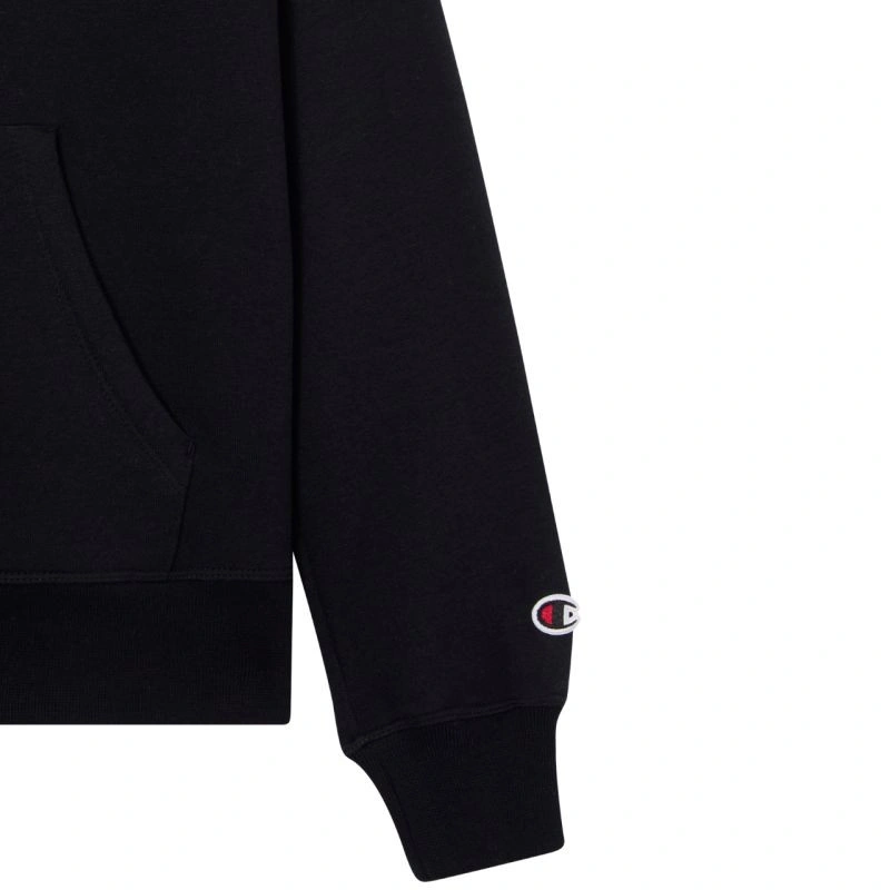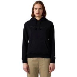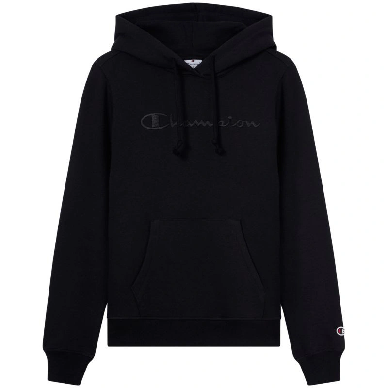 Bluza damska Champion Hooded Sweatshirt czarna 118379 KK001 Bluza damska Champion sprawdzi się podczas codziennego użytkowania i aktywności. Dopasowany krój. Nieodpinany, regulowany kaptur. Ocieplone wnętrze. Ściągacze w mankietach i u dołu. Frontowa kieszeń. Logo na piersi i rękawie. Materiał: 70% bawełna, 30% poliester