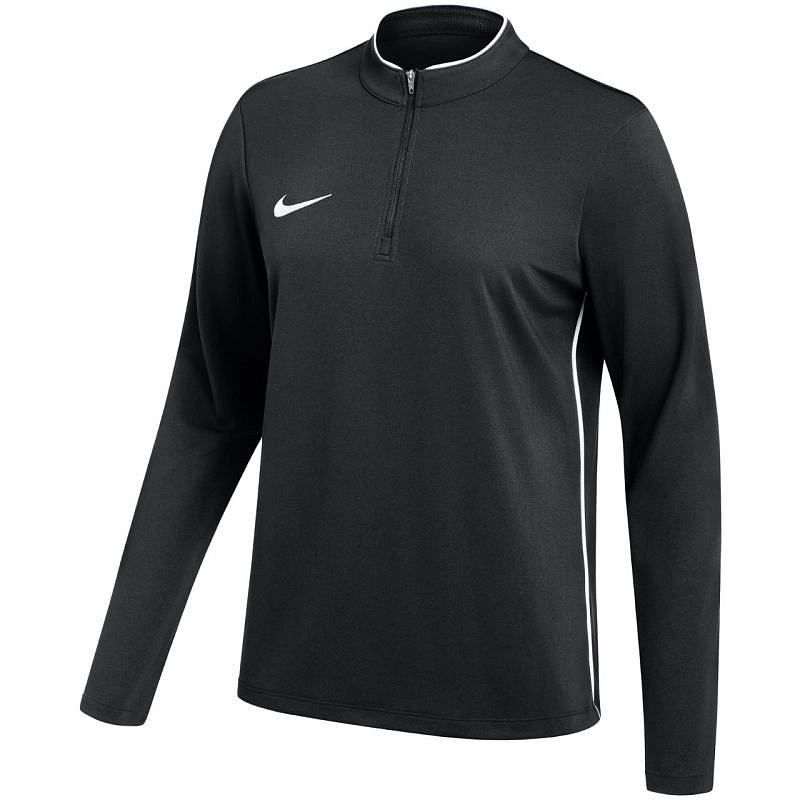 Bluza damska Nike Dri-Fit Park 26 Drill Top czarna IB7540 010 Bluza damska Nike sprawdzi się podczas treningów. Oddychający materiał z technologią Dri-FIT. Stójka. Dopasowany krój. Krótki zamek. Kontrastowe lamówki po bokach. Materiał: 100% poliester