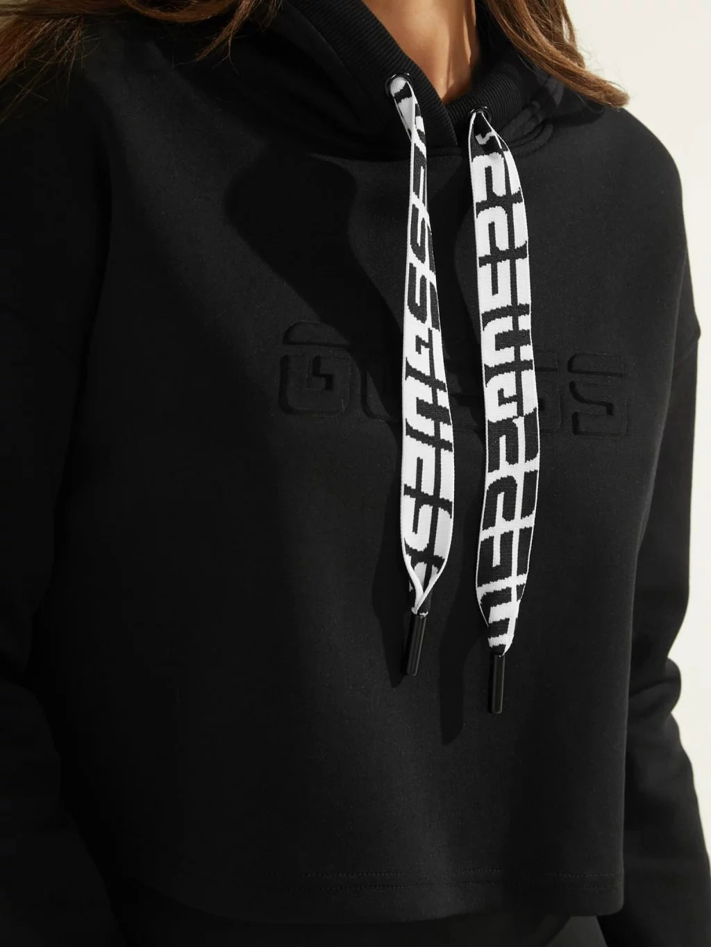 Damska przycięta bluza Guess -Sportowe cięcie -Okrągły dekolt z kapturem -Długie rękawy - sznurowany