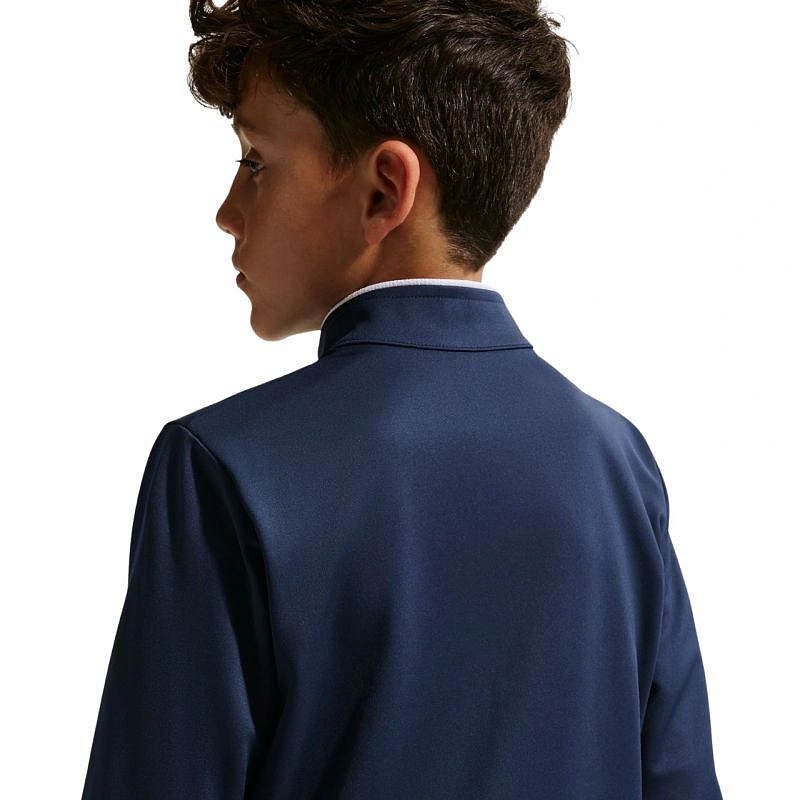 Bluza dla dzieci Nike Dri-Fit Park 26 granatowa HM7256 410 Juniorska bluza Nike jest doskonałym wyborem na różne aktywności Twojego dziecka w chłodniejsze dni. Sportowy fason został wyeksponowany przez kontrastowe lamówki, które są subtelnym akcentem, dopełniającym bluzę. Oddychający materiał z technologią Dri-FIT. Regularny krój. Stójka. Boczne kieszenie. Długi suwak. Materiał: 100% poliester